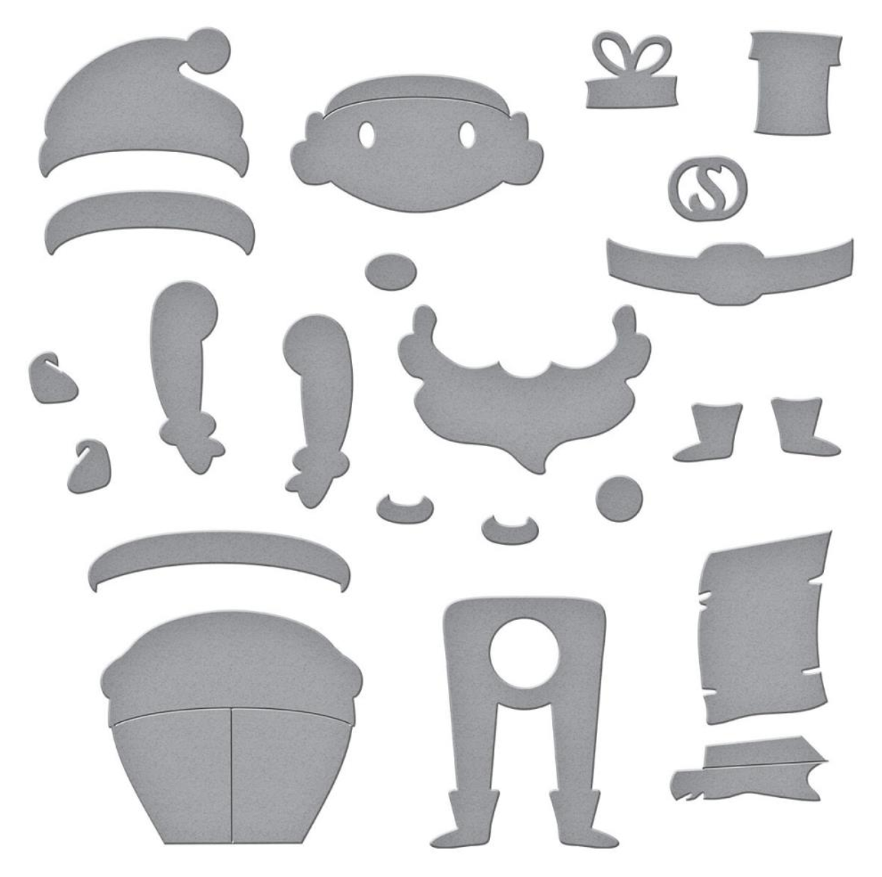 When assembled, it creates a jolly St. Nick and he is always on the go with his moving legs - super fun. The set includes a gift and a good list! The assembled St. Nick measures 2.20 x 3.00 in./5.60 x 7.60 inches. This package contains Dancin' St. Nick from the Tinsel Time Collection: a set of 9 metal dies measuring between 0.26 x 0.26 inches and 1.44 x 0.34 inches.